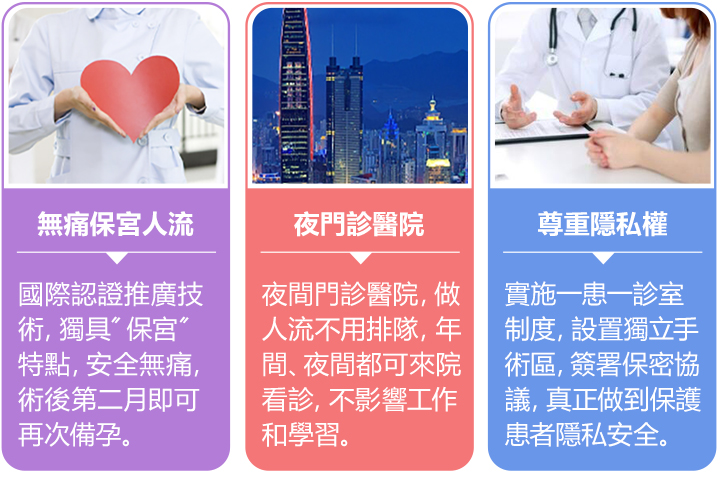 深圳怡康婦產醫院,深圳計劃生育醫療機構,是持有《婦科類終止妊娠執業資格證》和《母嬰保健技術服務執業許可證》的規范專業計劃生育機構。醫院術前為患者進行全方面檢查,根據檢查結果制定針對性人流方案。且每臺手術均由25年以上專家在無菌手術室內完成,術後提供PAC術後維養體系,精心維養,保證術後生育能力,迅速康複。